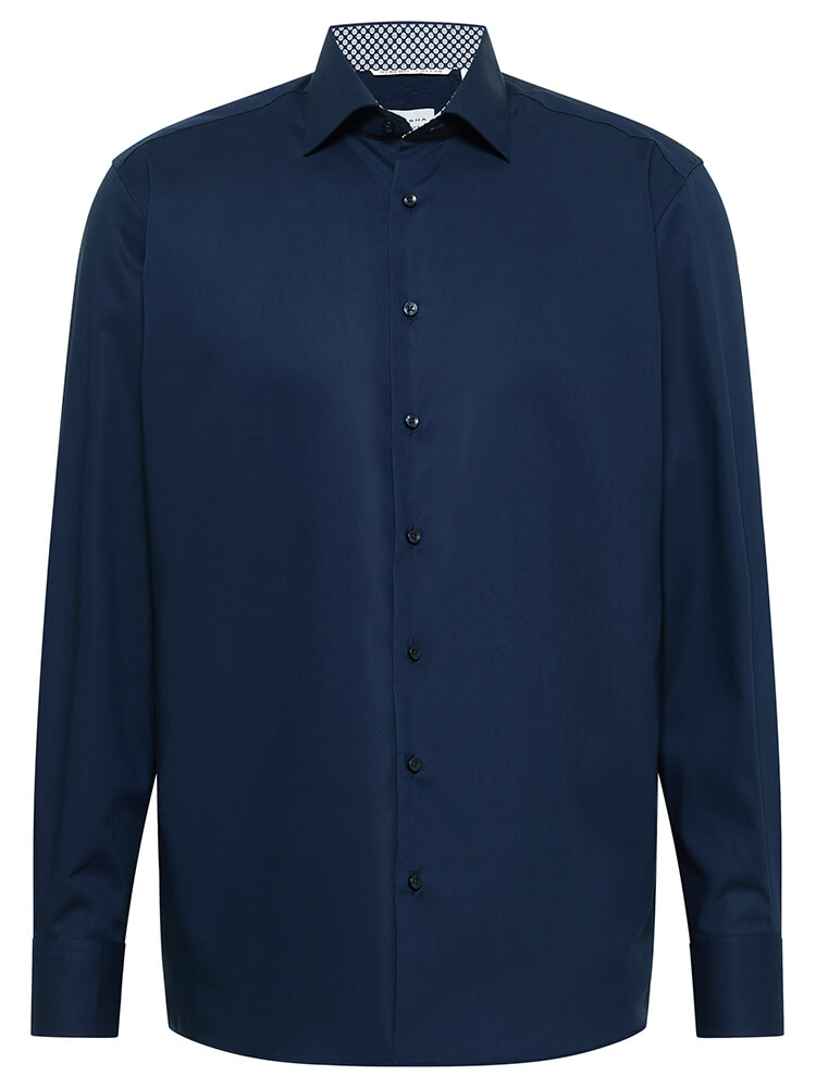 Das moderne Businesshemd aus der ETERNA Modern Fit Kollektion steht für den selbstbewussten und modischen Mann von heute. Ein zeitgemäßer Schnitt verbunden mit erstklassigen Produktdetails verspricht einen hohen Komfort und macht dieses Hemd zu einem Meister des Arrangements. Das unifarbene Herrenhemd in der Farbe dunkelblau darf in keiner Herrengarderobe fehlen und kann mit dem vornehmen und klassischen Kent Kragen zu jedem Anlass sowie im Alltag getragen werden. Mit einer passenden Krawatte und einem großen Krawattenknoten kommt dieses ETERNA Modern Fit Herrenhemd am besten zur Geltung.Herstellerinformation: