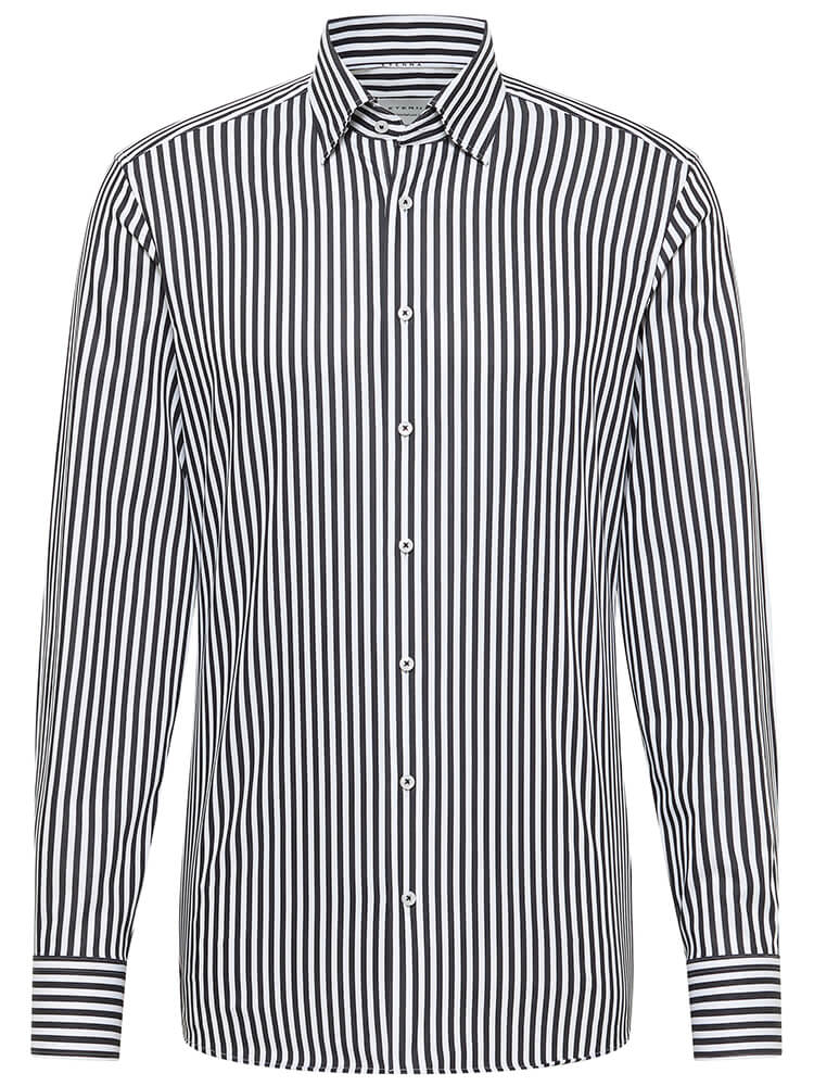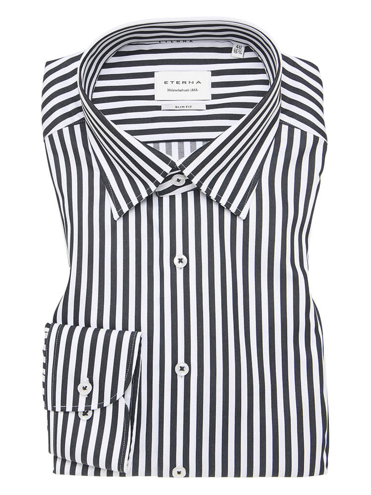 Das elegante Businesshemd aus der ETERNA Slim Fit Kollektion steht für den schlanken und modebewussten Mann von heute. Ein körperbetonter Schnitt verbunden mit modischen Produktdetails verspricht einen hohen Komfort und macht dieses Hemd zu einem Künstler der Kombination. Das gestreifte Herrenhemd in der Farbe schwarz darf in keiner Herrengarderobe fehlen und kann mit dem eleganten und klassischen Under-Button-down Kragen zu jedem Anlass sowie im Alltag getragen werden. Mit einer schmalen Krawatte und einem kleinen Krawattenknoten kommt dieses ETERNA Slim Fit Herrenhemd am besten zur Geltung.Herstellerinformation: