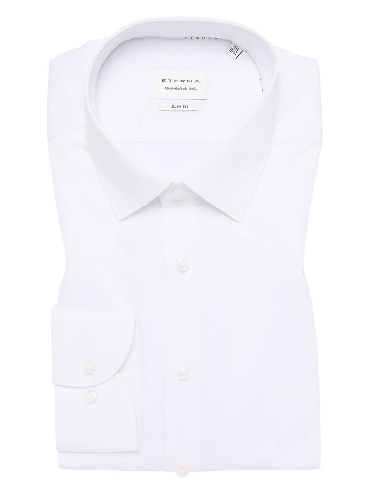 Das elegante Businesshemd aus der ETERNA Slim Fit Kollektion steht für den schlanken und modebewussten Mann von heute. Ein körperbetonter Schnitt verbunden mit modischen Produktdetails verspricht einen hohen Komfort und macht dieses Hemd zu einem Künstler der Kombination. Das unifarbene Herrenhemd in der Farbe weiß darf in keiner Herrengarderobe fehlen und kann mit dem eleganten und klassischen Kent Kragen zu jedem Anlass sowie im Alltag getragen werden. Mit einer schmalen Krawatte und einem kleinen Krawattenknoten kommt dieses ETERNA Slim Fit Herrenhemd am besten zur Geltung.Herstellerinformation: