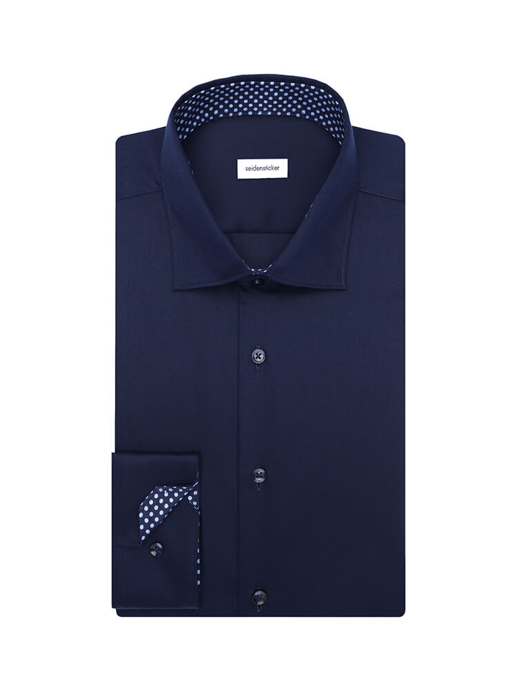 Das elegante Businesshemd aus der SEIDENSTICKER SLIM Kollektion steht für den schlanken und modebewussten Mann von heute. Ein körperbetonter Schnitt verbunden mit modischen Produktdetails verspricht einen hohen Komfort und macht dieses Hemd zu einem Künstler der Kombination. Das unifarbene Herrenhemd in der Farbe dunkelblau darf in keiner Herrengarderobe fehlen und kann mit dem eleganten und klassischen New Kent Kragen zu jedem Anlass sowie im Alltag getragen werden. Mit einer schmalen Krawatte und einem kleinen Krawattenknoten kommt dieses SEIDENSTICKER SLIM Herrenhemd am besten zur Geltung.Herstellerinformation: