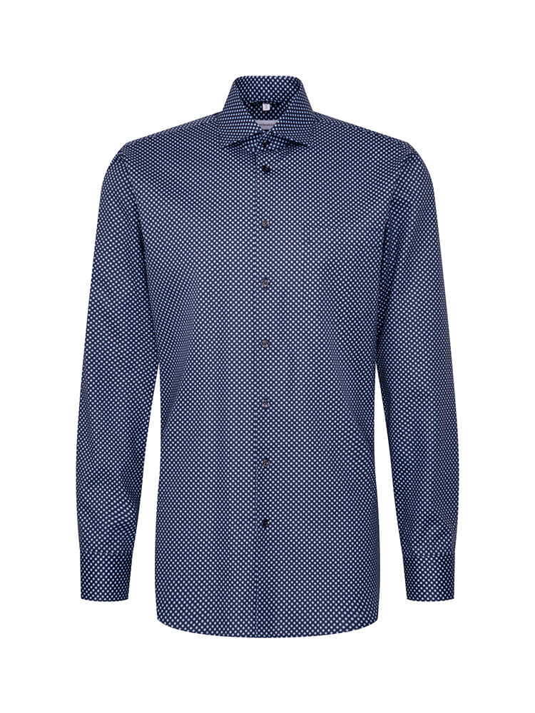Das moderne Businesshemd aus der SEIDENSTICKER REGULAR Kollektion steht für den selbstbewussten und modischen Mann von heute. Ein zeitgemäßer Schnitt verbunden mit erstklassigen Produktdetails verspricht einen hohen Komfort und macht dieses Hemd zu einem Meister des Arrangements. Das gemusterte Herrenhemd in der Farbe dunkelblau darf in keiner Herrengarderobe fehlen und kann mit dem vornehmen und klassischen New Kent Kragen zu jedem Anlass sowie im Alltag getragen werden. Mit einer passenden Krawatte und einem großen Krawattenknoten kommt dieses SEIDENSTICKER REGULAR Herrenhemd am besten zur Geltung.Herstellerinformation: