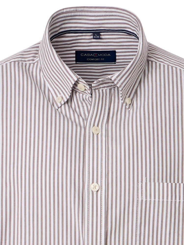 Das komfortable Freizeithemd aus der CASAMODA Comfort Fit Kollektion steht für den kultivierten und modebewussten Mann von heute. Ein klassischer Schnitt verbunden mit modischen Produktdetails verspricht einen hohen Komfort und macht dieses Hemd zu einem Meister der Kombination. Das gestreifte Herrenhemd in der Farbe braun darf in keiner Herrengarderobe fehlen und kann mit dem eleganten und zeitlosen Button-down Kragen zu jedem Anlass sowie im Alltag getragen werden. Mit einer passenden Krawatte und einem großen Krawattenknoten kommt dieses CASAMODA Comfort Fit Herrenhemd am besten zur Geltung.Herstellerinformation: