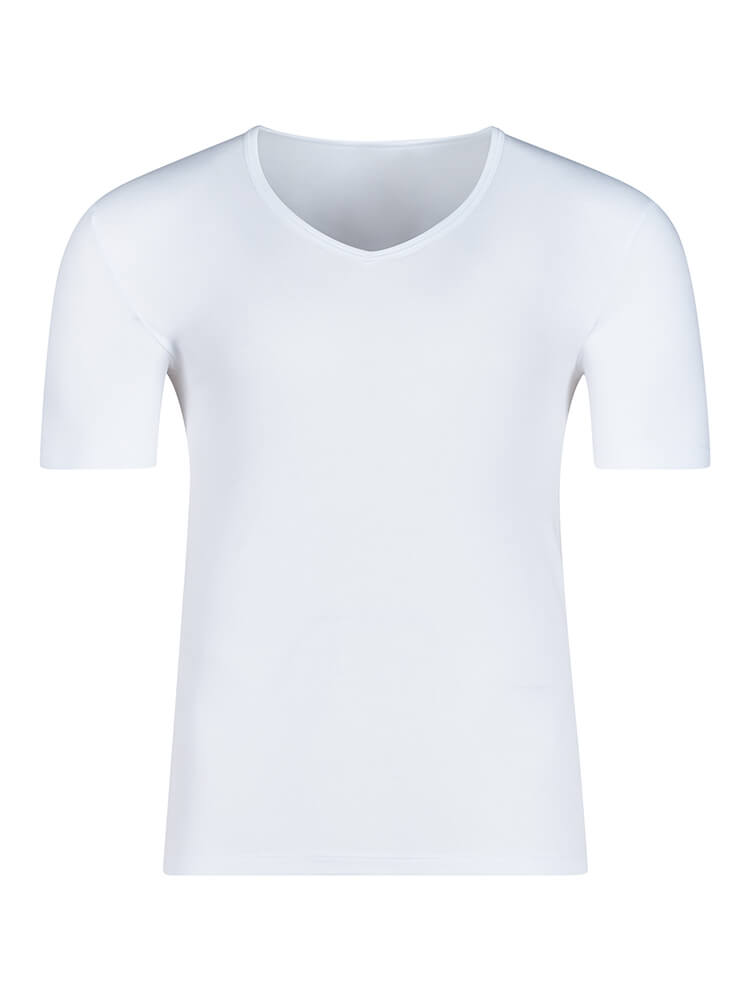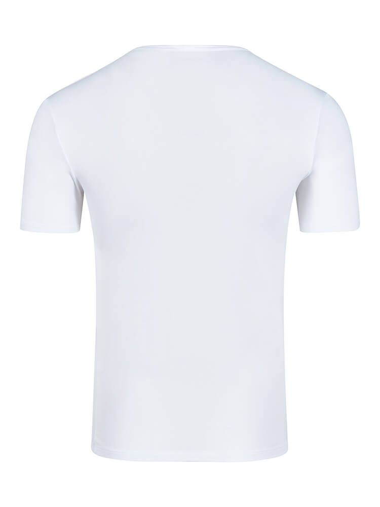 Mit V-Ausschnitt, halblangen Ärmeln und Regular Fit ist das Shirt ideal für Alltag, Freizeit oder als leichte Unterwäsche. Es ist bügelleicht und unkompliziert in der Maschine waschbar – perfekt für alle, die Wert auf hochwertige Materialien und ein frisches, angenehmes Trageerlebnis legen.