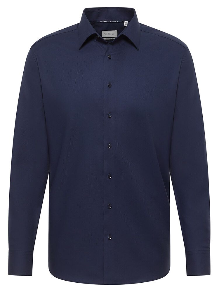 Das moderne Businesshemd aus der ETERNA Modern Fit Kollektion steht für den selbstbewussten und modischen Mann von heute. Ein zeitgemäßer Schnitt verbunden mit erstklassigen Produktdetails verspricht einen hohen Komfort und macht dieses Hemd zu einem Meister des Arrangements. Das unifarbene Herrenhemd in der Farbe marine darf in keiner Herrengarderobe fehlen und kann mit dem vornehmen und klassischen Kent Kragen zu jedem Anlass sowie im Alltag getragen werden. Mit einer passenden Krawatte und einem großen Krawattenknoten kommt dieses ETERNA Modern Fit Herrenhemd am besten zur Geltung.