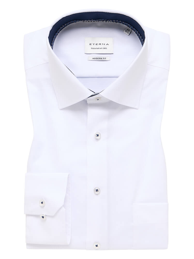 Das moderne Businesshemd aus der ETERNA Modern Fit Kollektion steht für den selbstbewussten und modischen Mann von heute. Ein zeitgemäßer Schnitt verbunden mit erstklassigen Produktdetails verspricht einen hohen Komfort und macht dieses Hemd zu einem Meister des Arrangements. Das unifarbene Herrenhemd in der Farbe weiß darf in keiner Herrengarderobe fehlen und kann mit dem vornehmen und klassischen Kent Kragen zu jedem Anlass sowie im Alltag getragen werden. Mit einer passenden Krawatte und einem großen Krawattenknoten kommt dieses ETERNA Modern Fit Herrenhemd am besten zur Geltung.