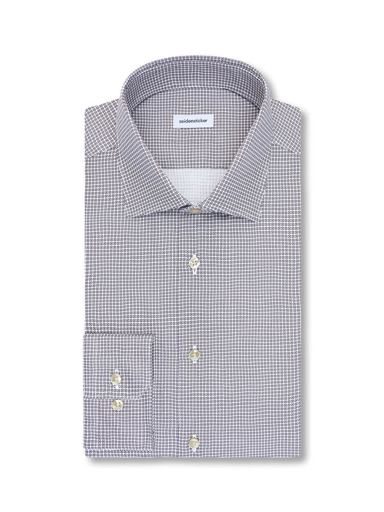 Das elegante Businesshemd aus der SEIDENSTICKER SLIM Kollektion steht für den schlanken und modebewussten Mann von heute. Ein körperbetonter Schnitt verbunden mit modischen Produktdetails verspricht einen hohen Komfort und macht dieses Hemd zu einem Künstler der Kombination. Das gemusterte Herrenhemd in der Farbe braun darf in keiner Herrengarderobe fehlen und kann mit dem eleganten und klassischen New Kent Kragen zu jedem Anlass sowie im Alltag getragen werden. Mit einer schmalen Krawatte und einem kleinen Krawattenknoten kommt dieses SEIDENSTICKER SLIM Herrenhemd am besten zur Geltung.Herstellerinformation: