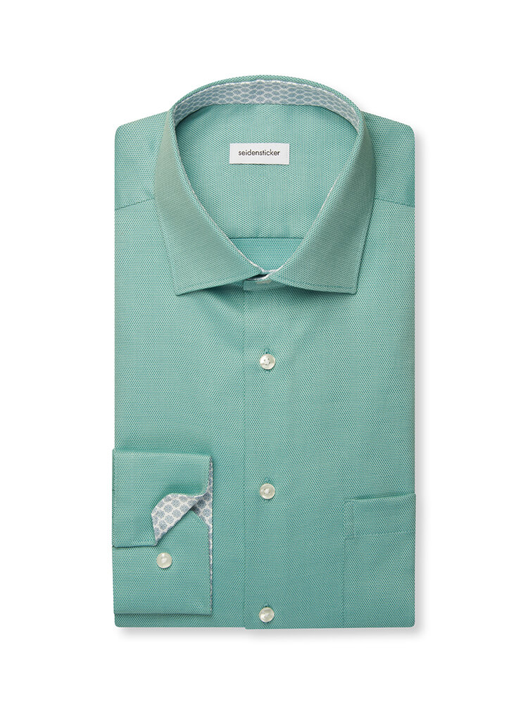 Das moderne Businesshemd aus der SEIDENSTICKER REGULAR Kollektion steht für den selbstbewussten und modischen Mann von heute. Ein zeitgemäßer Schnitt verbunden mit erstklassigen Produktdetails verspricht einen hohen Komfort und macht dieses Hemd zu einem Meister des Arrangements. Das unifarbene Herrenhemd in der Farbe grün darf in keiner Herrengarderobe fehlen und kann mit dem vornehmen und klassischen New Kent Kragen zu jedem Anlass sowie im Alltag getragen werden. Mit einer passenden Krawatte und einem großen Krawattenknoten kommt dieses SEIDENSTICKER REGULAR Herrenhemd am besten zur Geltung.