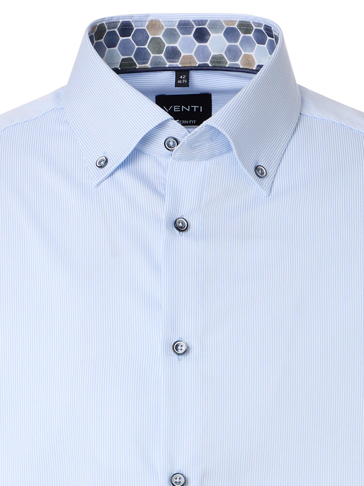 Das moderne Businesshemd aus der VENTI Modern Fit Kollektion steht für den selbstbewussten und modischen Mann von heute. Ein zeitgemäßer Schnitt verbunden mit erstklassigen Produktdetails verspricht einen hohen Komfort und macht dieses Hemd zu einem Meister des Arrangements. Das gestreifte Herrenhemd in der Farbe hellblau darf in keiner Herrengarderobe fehlen und kann mit dem vornehmen und klassischen Button-down Kragen zu jedem Anlass sowie im Alltag getragen werden. Mit einer passenden Krawatte und einem großen Krawattenknoten kommt dieses VENTI Modern Fit Herrenhemd am besten zur Geltung.Herstellerinformation: