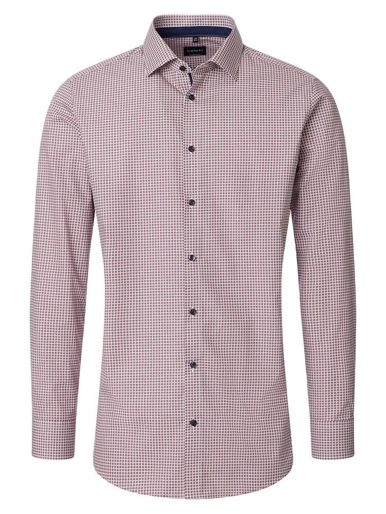 Das moderne Businesshemd aus der VENTI Modern Fit Kollektion steht für den selbstbewussten und modischen Mann von heute. Ein zeitgemäßer Schnitt verbunden mit erstklassigen Produktdetails verspricht einen hohen Komfort und macht dieses Hemd zu einem Meister des Arrangements. Das gemusterte Herrenhemd in der Farbe rot darf in keiner Herrengarderobe fehlen und kann mit dem vornehmen und klassischen Kent Kragen zu jedem Anlass sowie im Alltag getragen werden. Mit einer passenden Krawatte und einem großen Krawattenknoten kommt dieses VENTI Modern Fit Herrenhemd am besten zur Geltung.