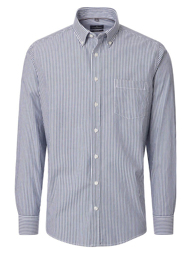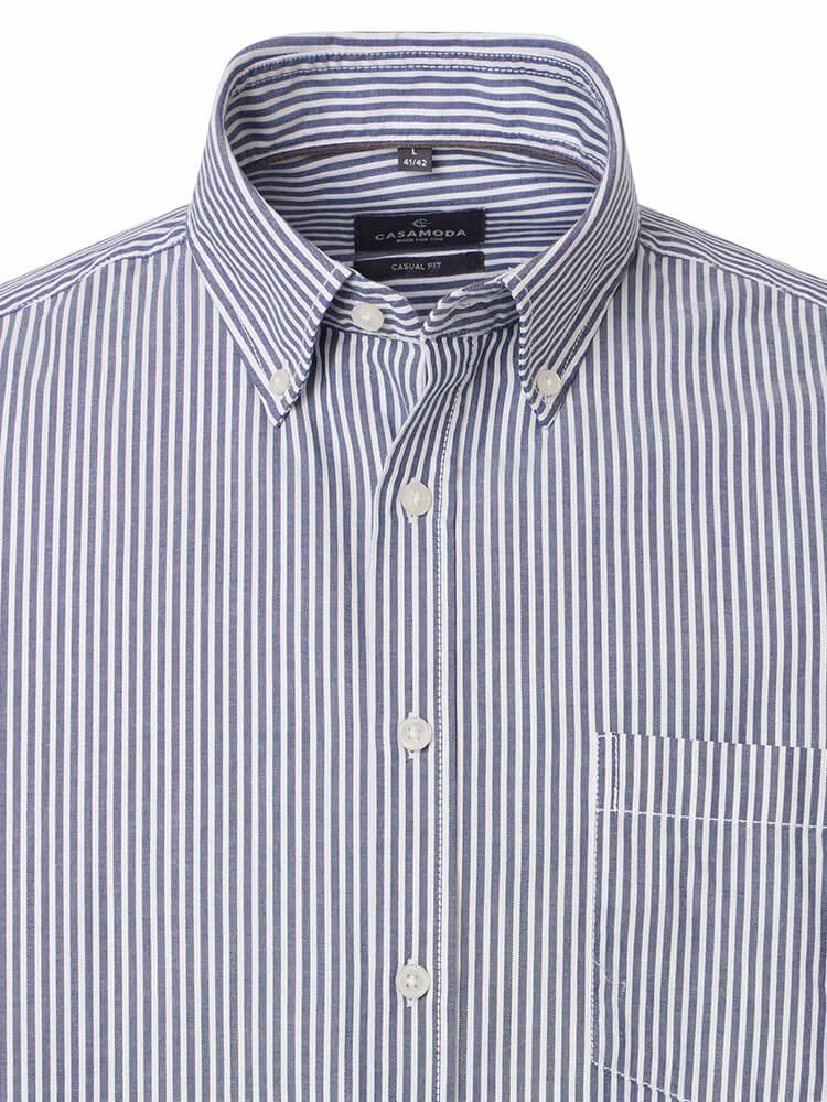 Das moderne Freizeithemd aus der CASAMODA Modern Fit Kollektion steht für den selbstbewussten und modischen Mann von heute. Ein zeitgemäßer Schnitt verbunden mit erstklassigen Produktdetails verspricht einen hohen Komfort und macht dieses Hemd zu einem Meister des Arrangements. Das gestreifte Herrenhemd in der Farbe dunkelblau darf in keiner Herrengarderobe fehlen und kann mit dem vornehmen und klassischen Button-down Kragen zu jedem Anlass sowie im Alltag getragen werden. Mit einer passenden Krawatte und einem großen Krawattenknoten kommt dieses CASAMODA Modern Fit Herrenhemd am besten zur Geltung.Herstellerinformation: