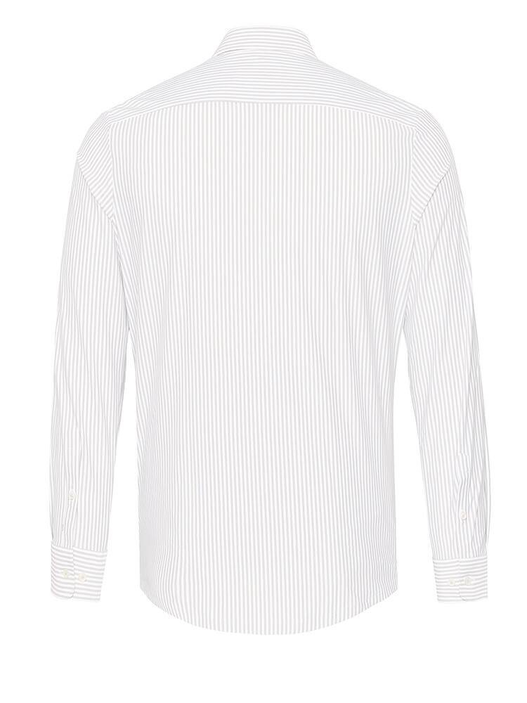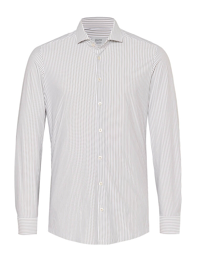 Das elegante Jerseyhemd aus der PURE Functional Kollektion steht für den schlanken und modebewussten Mann von heute. Ein körperbetonter Schnitt verbunden mit modischen Produktdetails verspricht einen hohen Komfort und macht dieses Hemd zu einem Künstler der Kombination. Das gestreifte Herrenhemd in der Farbe grau darf in keiner Herrengarderobe fehlen und kann mit dem eleganten und klassischen Haifisch Kragen zu jedem Anlass sowie im Alltag getragen werden. Mit einer schmalen Krawatte und einem kleinen Krawattenknoten kommt dieses PURE Functional Herrenhemd am besten zur Geltung.Herstellerinformation: