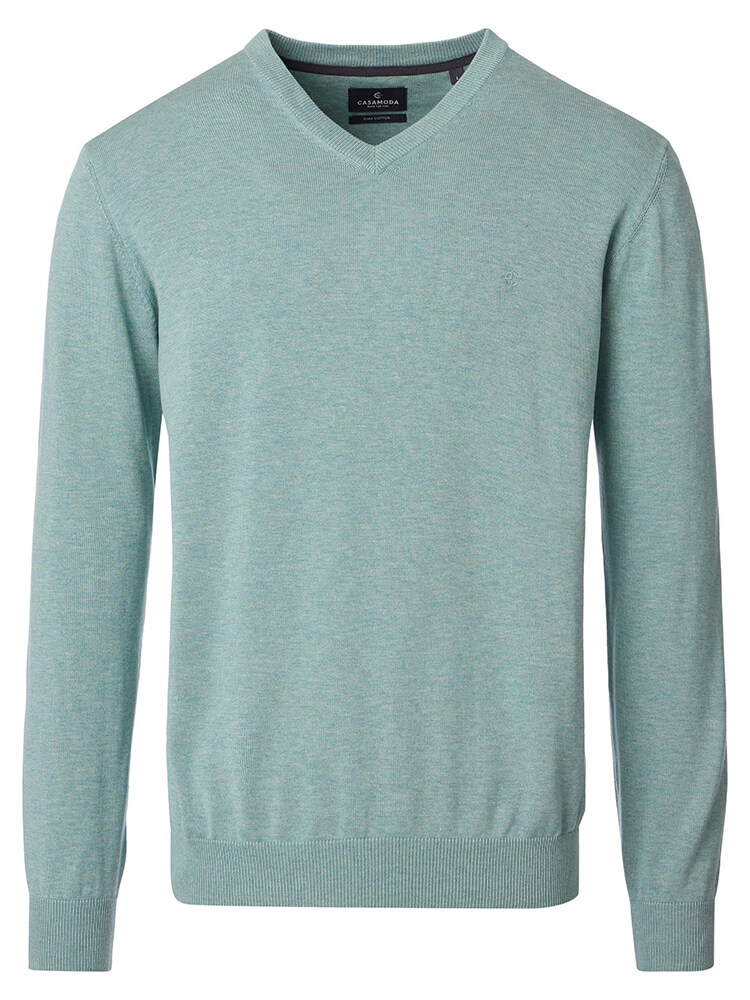 Zu jeder Jahreszeit, sorgt der überaus stilvolle CASAMODA regular fit Strickpullover an kühleren Abenden oder Tagen für ein angenehmen Tragekomfort. Dieser unifarbene Strickpullover in der Farbe grün aus 100% Baumwolle mit eleganten V-Auschnitt ergänzt Ihren Kleiderschrank und unterstreicht ihre maskuline Silhouette. Ob in der Freizeit oder im Büro der Wohlfühlfaktor ist mit diesem leicht taillierten Pullover aus dem Hause CASAMODA garantiert.